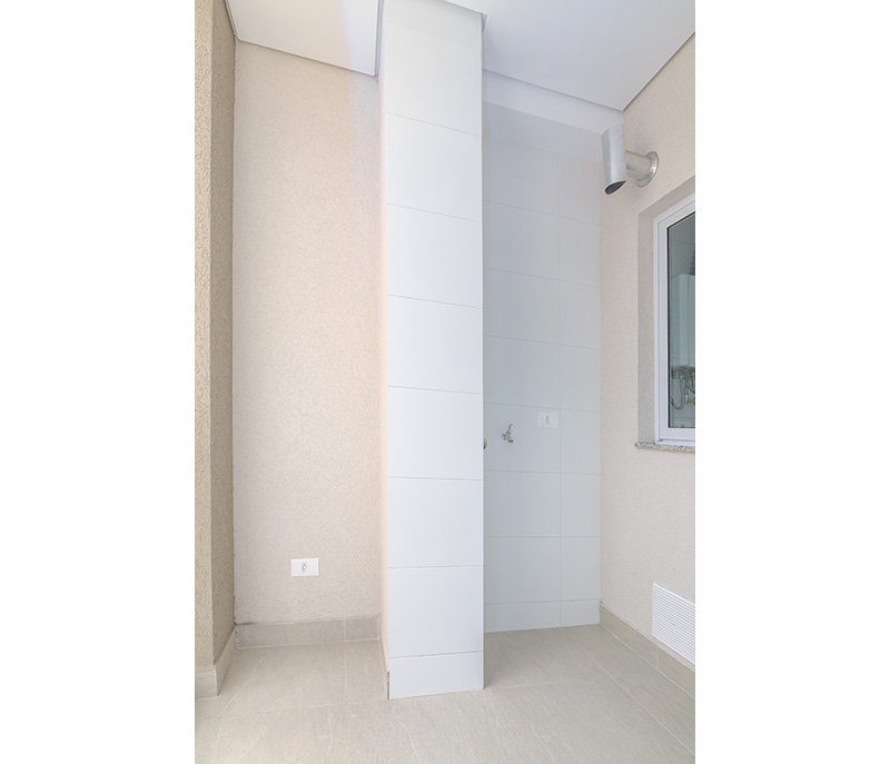 ** Sacada ampla com local próprio para instalação de máquina de lavar.