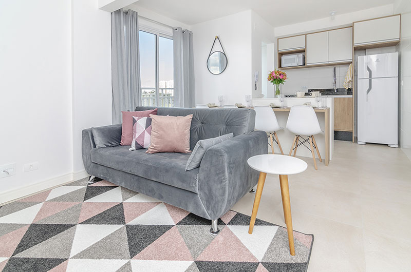 Obs: utensílios domésticos, de cama, mesa e banho e itens de decoração meramente ilustrativos. Itens inclusos no apartamento: tapete, quadros, espelhos e almofadas.