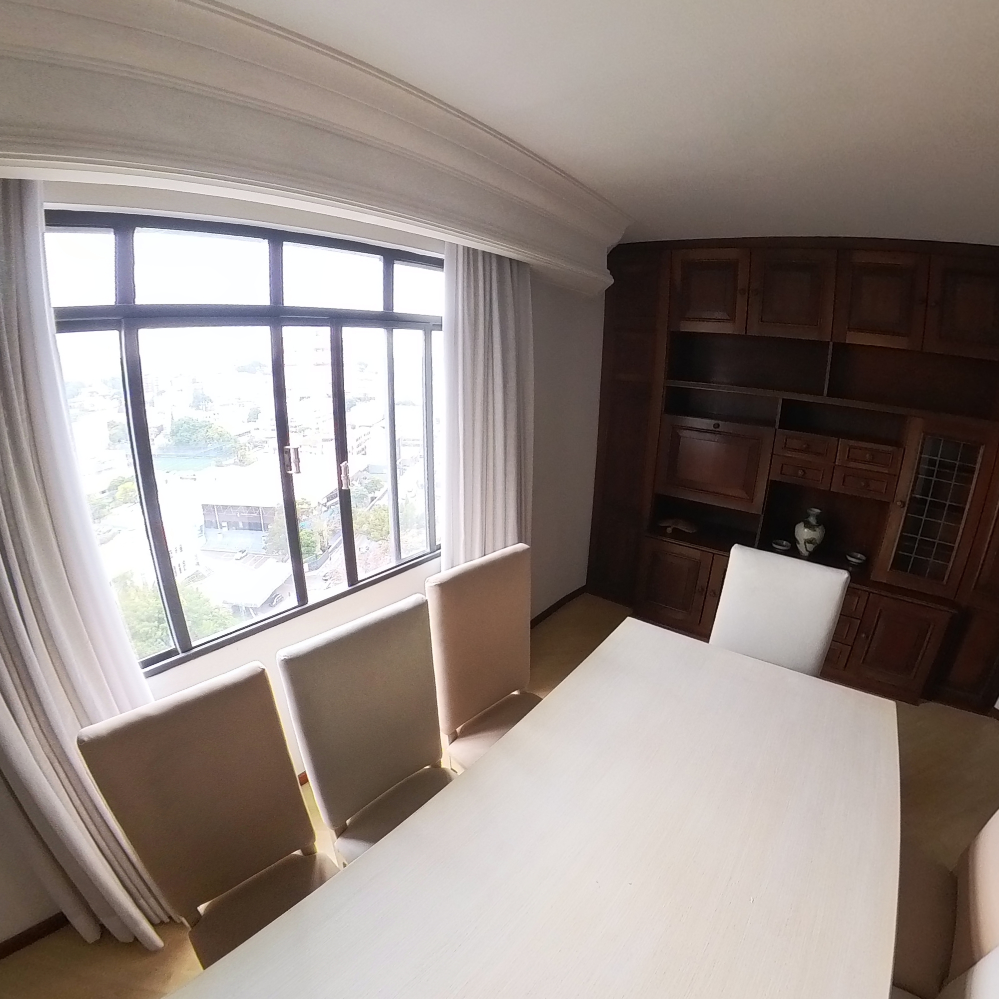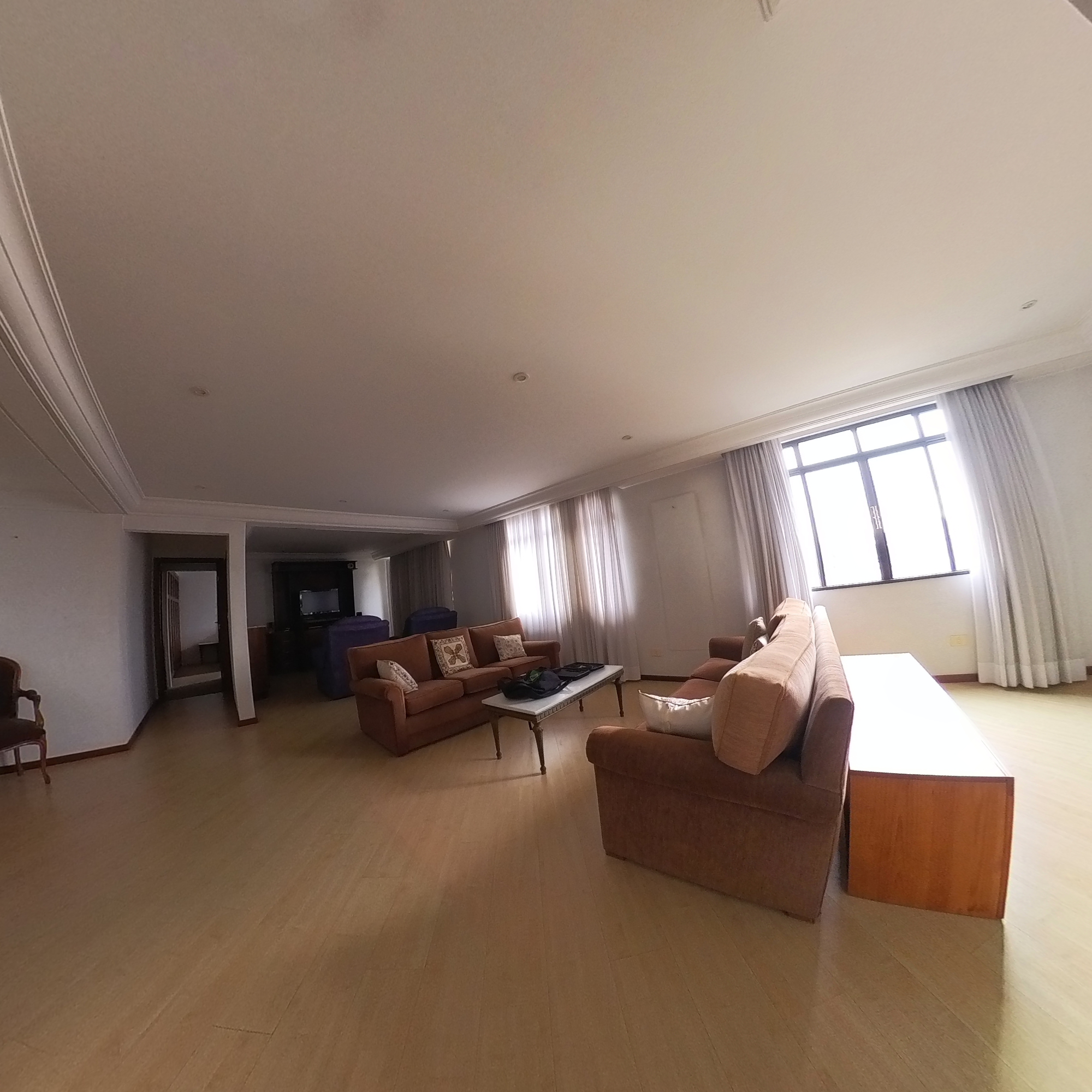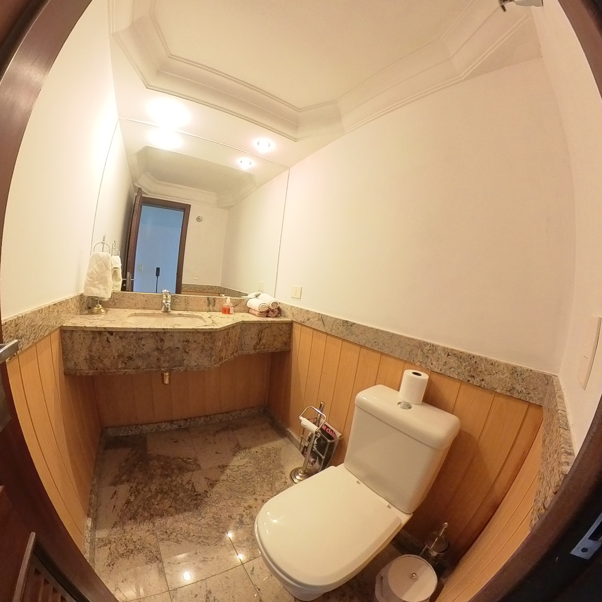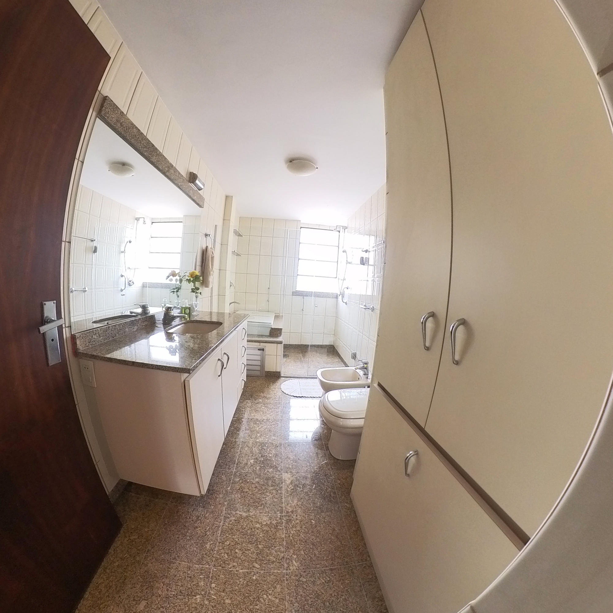Sala integrada com 3 ambientes (sala de estar, sala de refeição e sala de TV), 1 suíte master, 1 suíte, 1 quarto, 3 banheiros, lavabo, cozinha com despensa, lavanderia externa ao apartamento, com dependência de empregada.