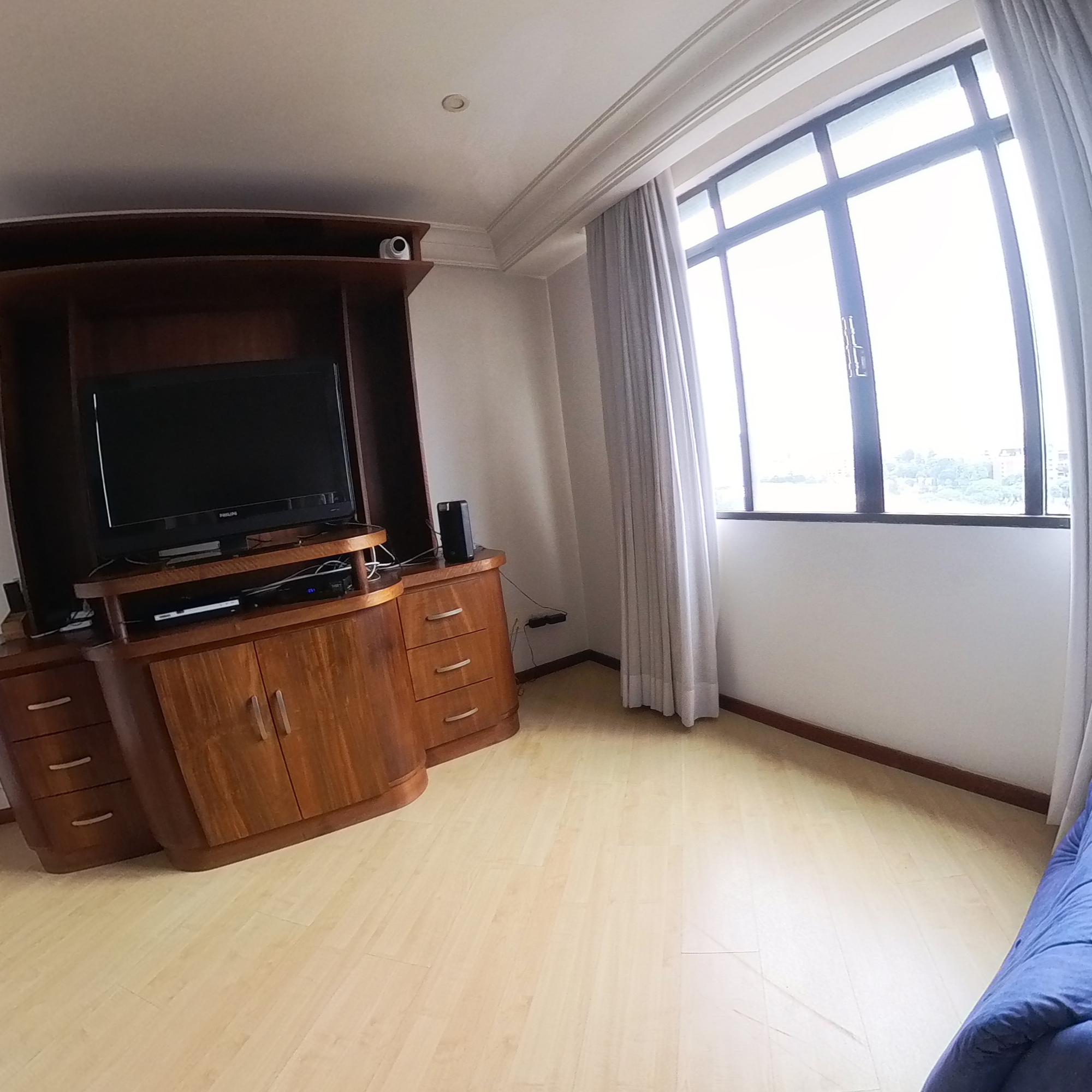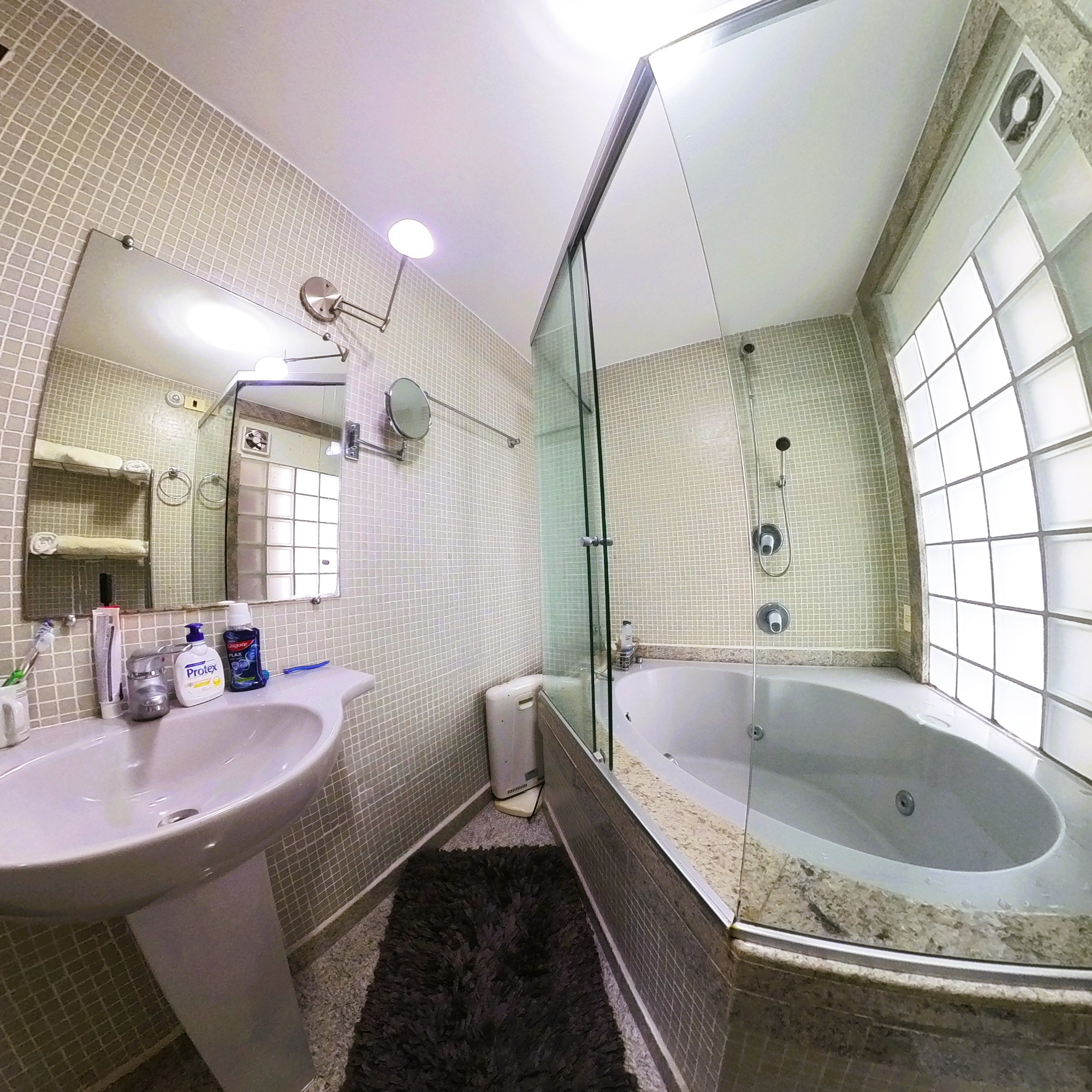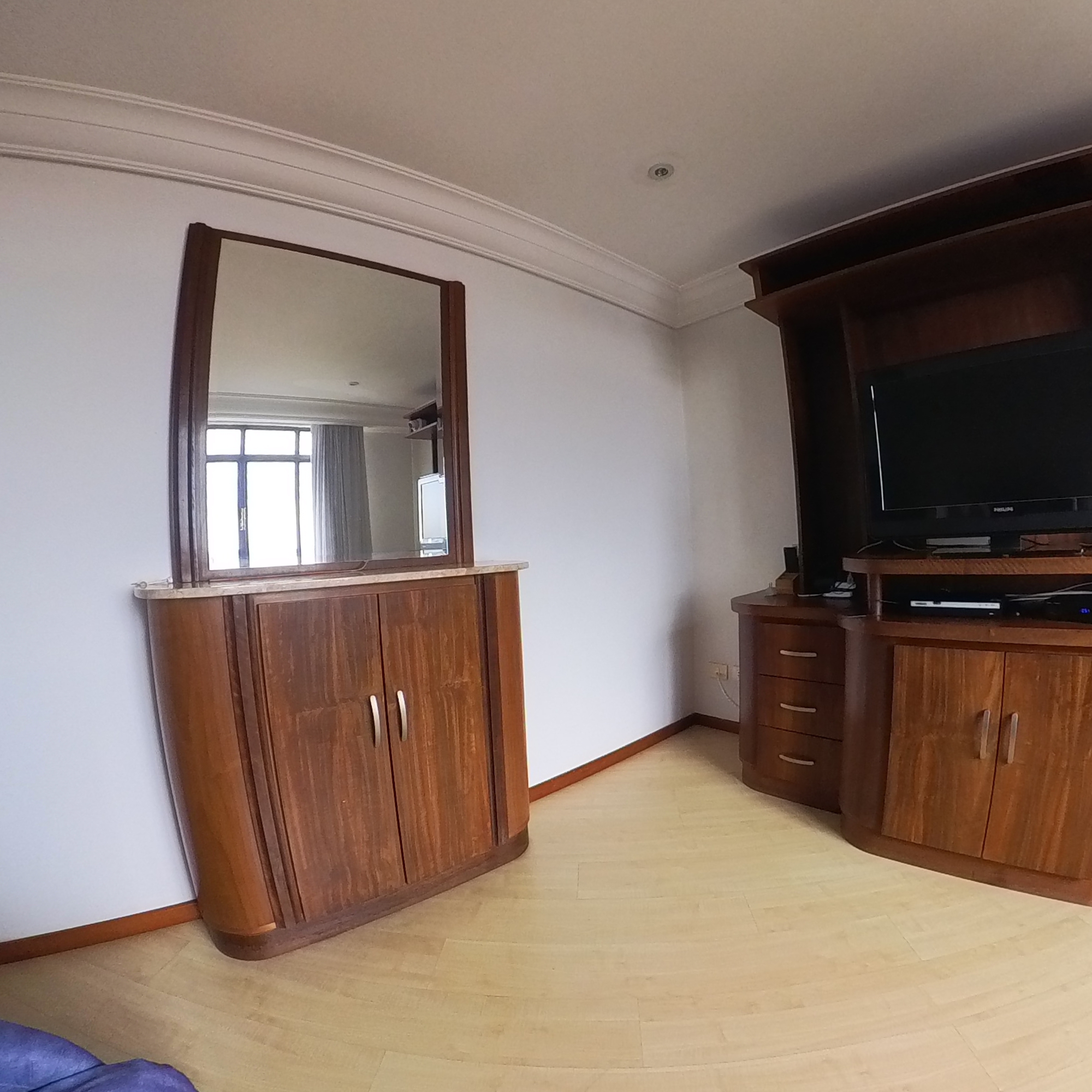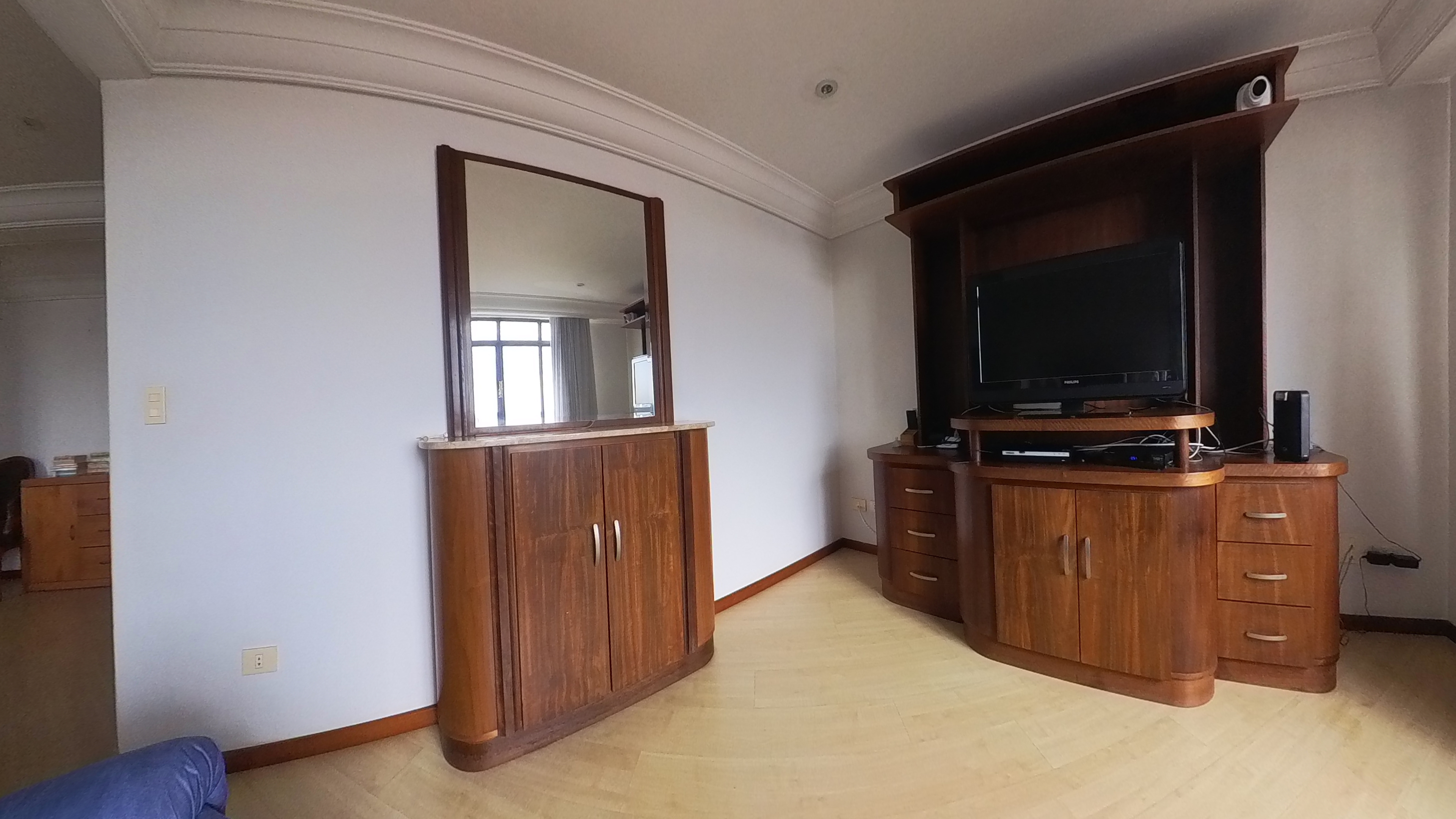 Sala integrada com 3 ambientes (sala de estar, sala de refeição e sala de TV), 1 suíte master, 1 suíte, 1 quarto, 3 banheiros, lavabo, cozinha com despensa, lavanderia externa ao apartamento, com dependência de empregada.